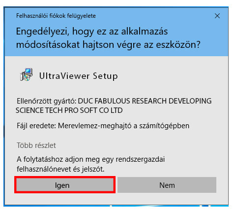 Az UltraViewer távoli vezérlő progam az ismert TeamViewer ingyenes klónja. A program úgynevezett portable változata kerül letöltésre, majd felmásolásra a gépre. A program minden indítása után egyedi belépési kódot generál így csak az aktuális kód megadásával lehetséges a belépés.